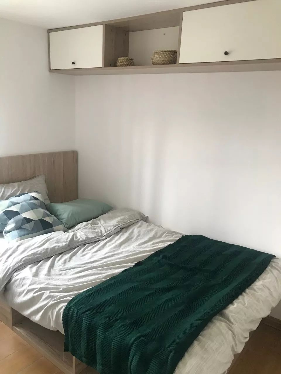 “仲夏”户型是面积最小的50㎡一居loft,墙体颜色为白蓝色,租金在5299元/月。虽然使用面积相对较小,也包括一房两厅一厨一卫和一个小阳台,楼梯旁有一个简易的小型储物间,二楼的工作间可以放置书桌和衣柜,可使得空间更好地利用。