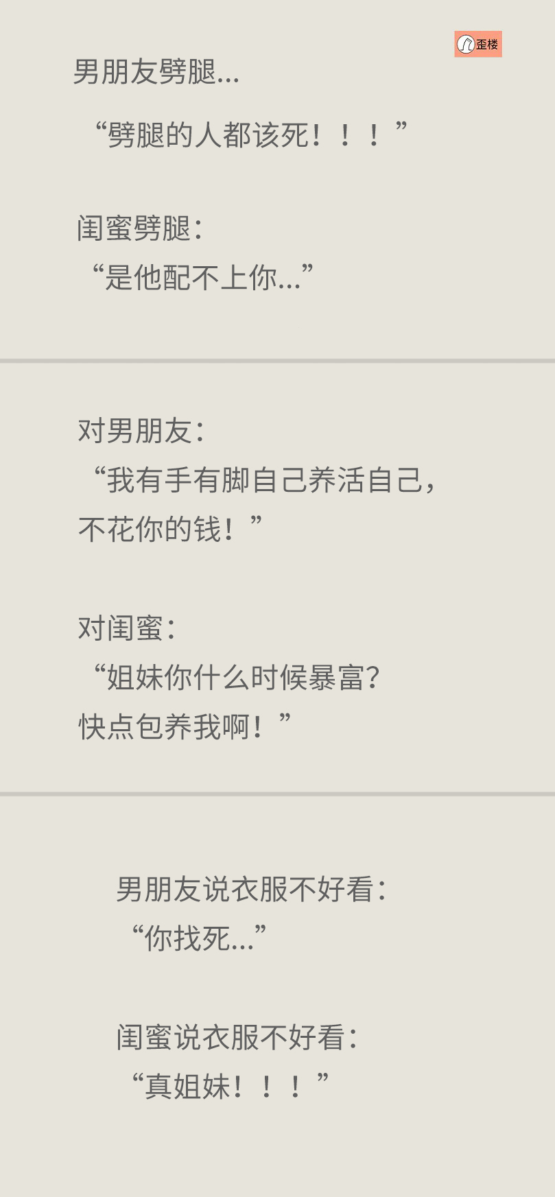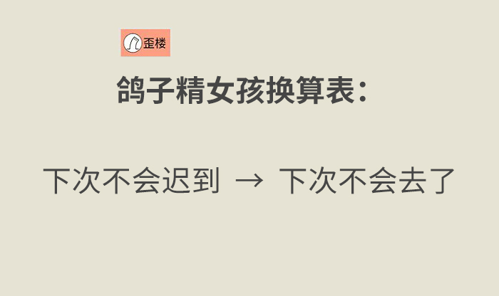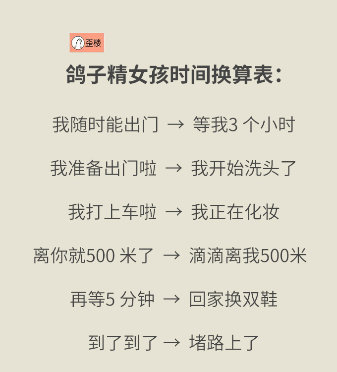 要是你不领情,反而催着鸽子精女孩出门,你注定要承担她们的怒火:“我说了5分钟出门就能5分钟后出门,用不着你每隔10分钟提醒我一次!!!”
