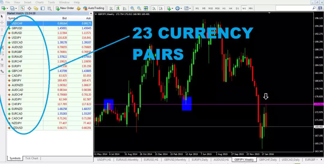 如果你可以同时监控20到23种货币对,根据图表中的支撑位和阻力位来对比价格行情,也许交易机会能多一些。不过依然还是需要长时间的等待。