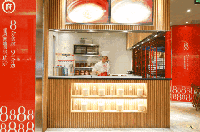 比如上海一家潮汕菜品类餐厅的新秀家府潮汕菜,在进行品牌升级时,就运用了许多“8”字符,门店也融入了“8分食材2分功”元素,在顾客视线中很是刷了一把存在感。