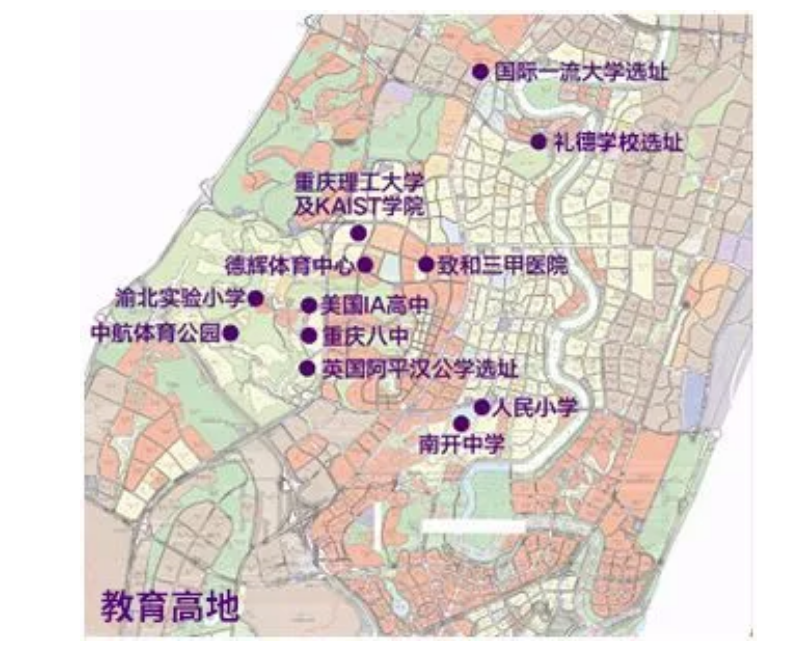 教育高地方面,目前已引进源自哈罗公学的礼德学校、美国IA中学、南开中学、重庆八中、人民小学等国际名校和重庆本地品牌名校,今后还将加快引进更多名校和国际教育资源,建设成为国内一流、西部领先的全品类基础教育高地。