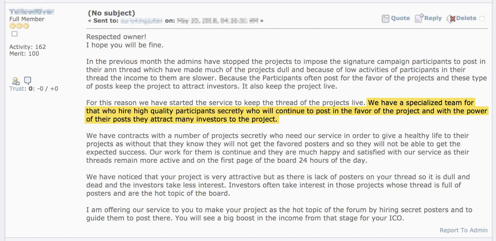 而现代版呢,聘请一家ICO营销机构,其会负责管理你的电报聊天、红迪子版论坛、Medium账户以及BitcoinTalk帖子的维护。