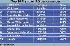 诸如Pets.com这样的公司,在一年内完成了从公司注册到IPO的过程,几乎每一次IPO都会爆发,每家公司在第一天的平均涨幅达到了68%。投资科技公司的首次公开募股,被广泛认为是一个简单的赚钱之道。互联网派对的现象遍布整个硅谷,那些与创始人关系密切的人,通常会得到“朋友和家人”的崇拜。
