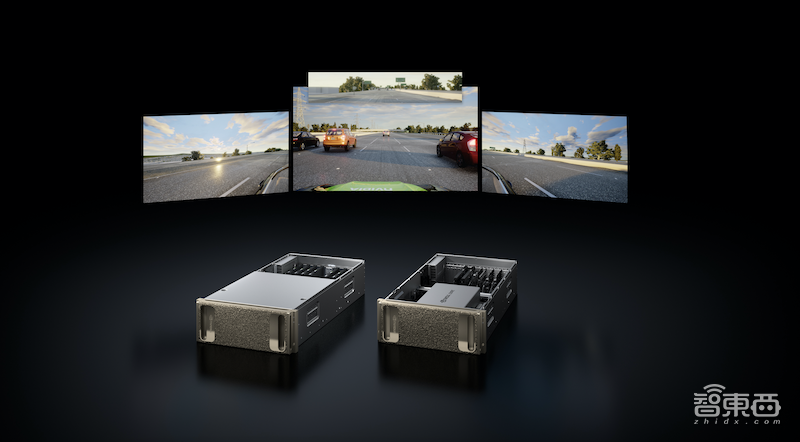 前者的内部搭载了英伟达显卡,运行英伟达Drive Sim模拟软件,并生成虚拟世界中运行车辆的传感器数据。