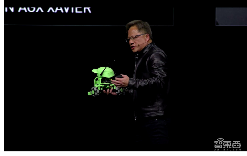 在发布会现场,一个名为kaya的绿色机器人就自己跑上了舞台,黄仁勋用语音命令其做下后,将其拿了起来。