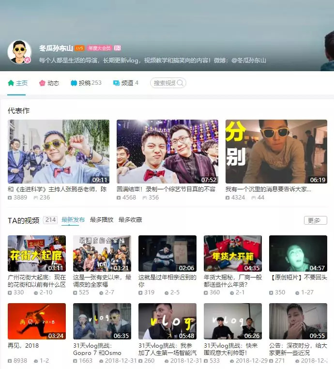 冬瓜孙东山:「中国 VLOG 第一人」,海外华人,至今已经拍过超过 400+个视频。