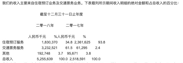 财报表示,住宿预订收入减少主要是因为公司战略性地减少了利润相对较低的销售渠道的间夜的销售。截至2018年12月31日止年度,承担存货风险的住宿预订收入超出佣金的部分为188.1百万元,较上一年的532.9百万元减少了64.7%,这是因为公司对住宿供应商的议价能力提高,公司将继续减少承担存货风险的买断间夜数量。