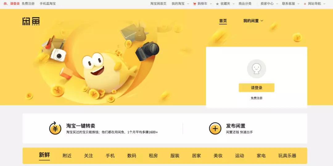闲鱼生于淘宝。2012年,淘宝推出二手频道,两年后分拆成独立应用。尽管“独立”了,但淘宝的优势一直在。淘宝订单信息中的“一键转卖”能直接跳转闲鱼。从新品到二手交易,这一承接非常自然。截至2018年7月底,闲鱼已实现近900亿的年GMV(交易总额)。