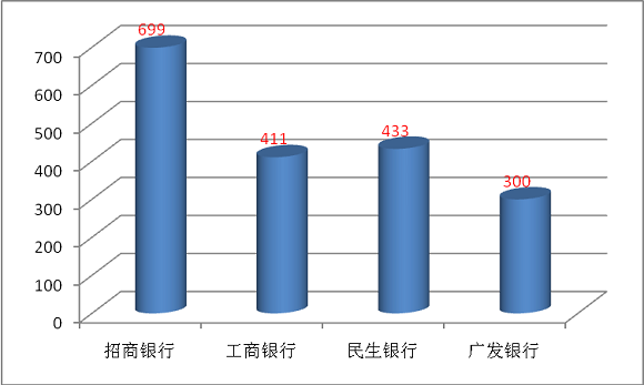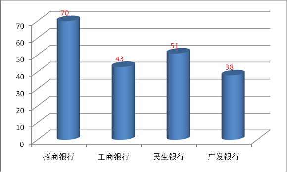 我们还是选择上述银行作为比较基础。下图列示了北京地区各商业银行的合作商户数量。