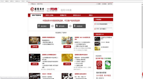 这里我们主要比较网上申请入口,以招商银行、民生银行以及工商银行为例予以说明。