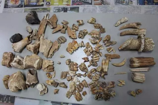 中药的龙骨,左上方的化石还有些经历了烧烤(来源: 张立召)