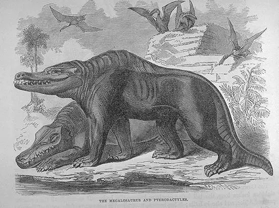巨齿龙早期的错误复原图,该图画于1854年(来源: http://palaeo.gly.bris.ac.uk/palaeofiles/frauds/reconstruction.htm)