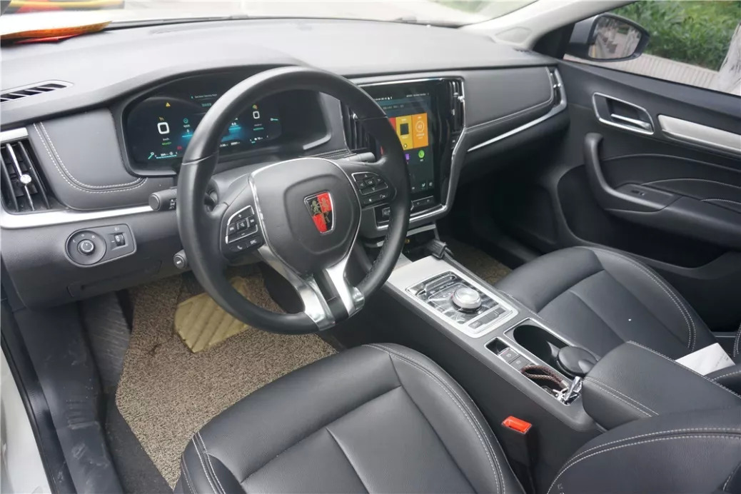 内饰也是一样的风格,这车从外到内都在朝着最主流的中国消费者献媚:简洁的中控布局、大面积的软包、细致有序的镀铬勾勒线条、液晶仪表盘、电子手刹、旋钮式换挡、真皮座椅……传统家用车该有的通通都有了,除了那个大得有点夸张的中控台触屏,一切都平淡无奇。