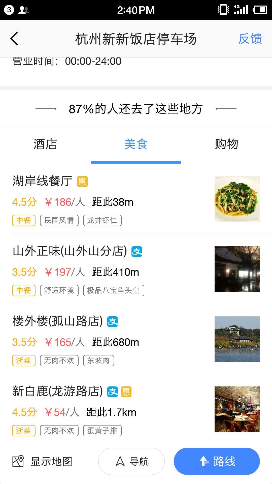 界面新闻发现,在高德地图的西湖景区界面,通过页面跳转至携程、飞猪、去哪儿等其他OTA平台,用户可以直接预定酒店房间,可以通过页面上的支付宝支付餐饮、购物项目。此前采访中,界面新闻曾了解到,背靠阿里的高德地图在合作中并不限于和阿里系企业合作,虽然进军旅游行业,但不同于近年进入旅游领域的谷歌,暂不收取佣金费用。刘振飞介绍,高德地图以开放平台的方式接入各类工具。