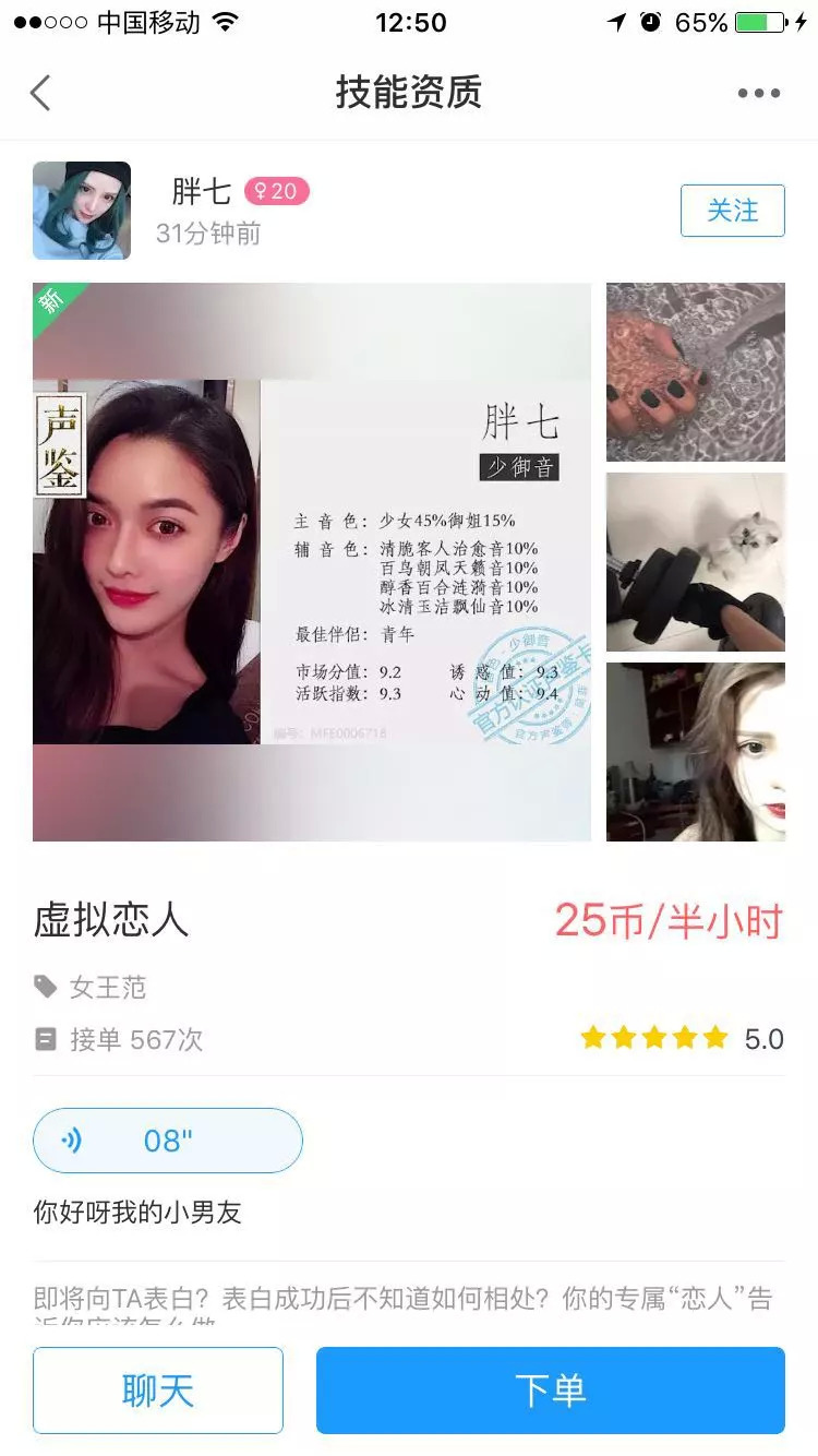 在服务内容上,也让人脑洞大开。不过硬糖君需要以自己的人格尊严强调下:抛弃那些约线下的龌龊想法吧,光是线上服务就足以达到沉浸式体验了。
