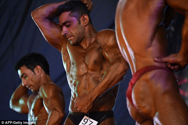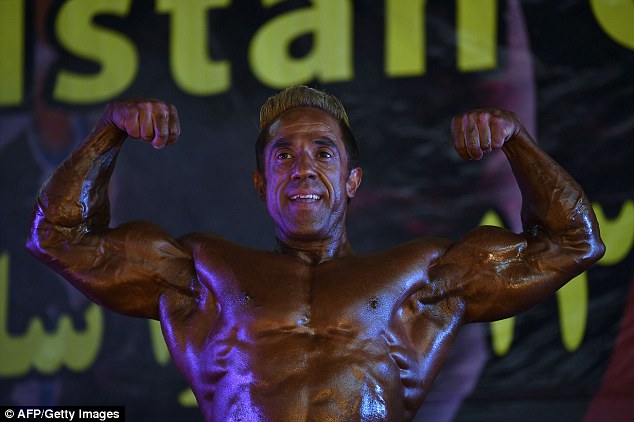 选手们身体涂成健康的古铜色,穿上性感的短裤。这些健身爱好者们在舞台上大秀肌肉,希望夺得观众和评委的青睐,获得本年度“阿富汗健美先生”的头衔。
