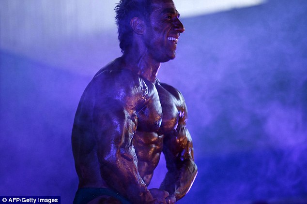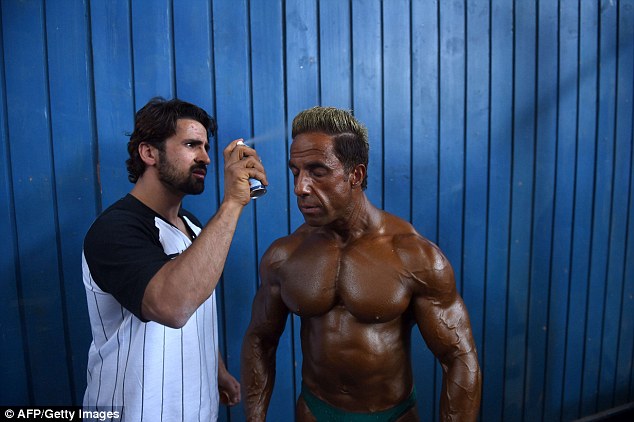 当然,作为亚洲人的阿富汗健美先生们原本是没有这么黝黑的,他们在赛前往身上涂了一层古铜色喷剂,这样能让自己看起来更健康: