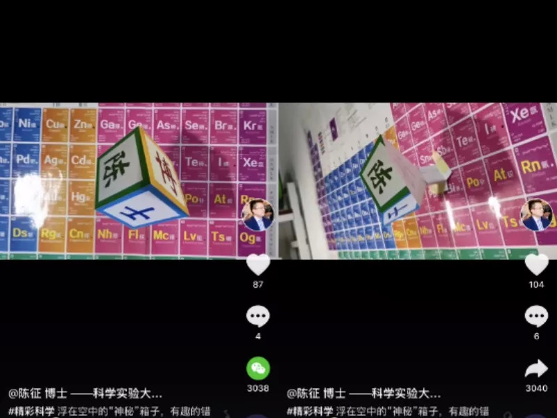 “它是碎片化的,但是请注意,它不等于无序,它应该是一组拼图里面的一片一片,当我们的受众拿到足够多的拼图碎片的时候,应该能拼出那个我们想传递给他的世界图景。”这个观点是抖音“科学实验大玩家”运营人、北京交通大学教师陈征博士观察分析出来的。