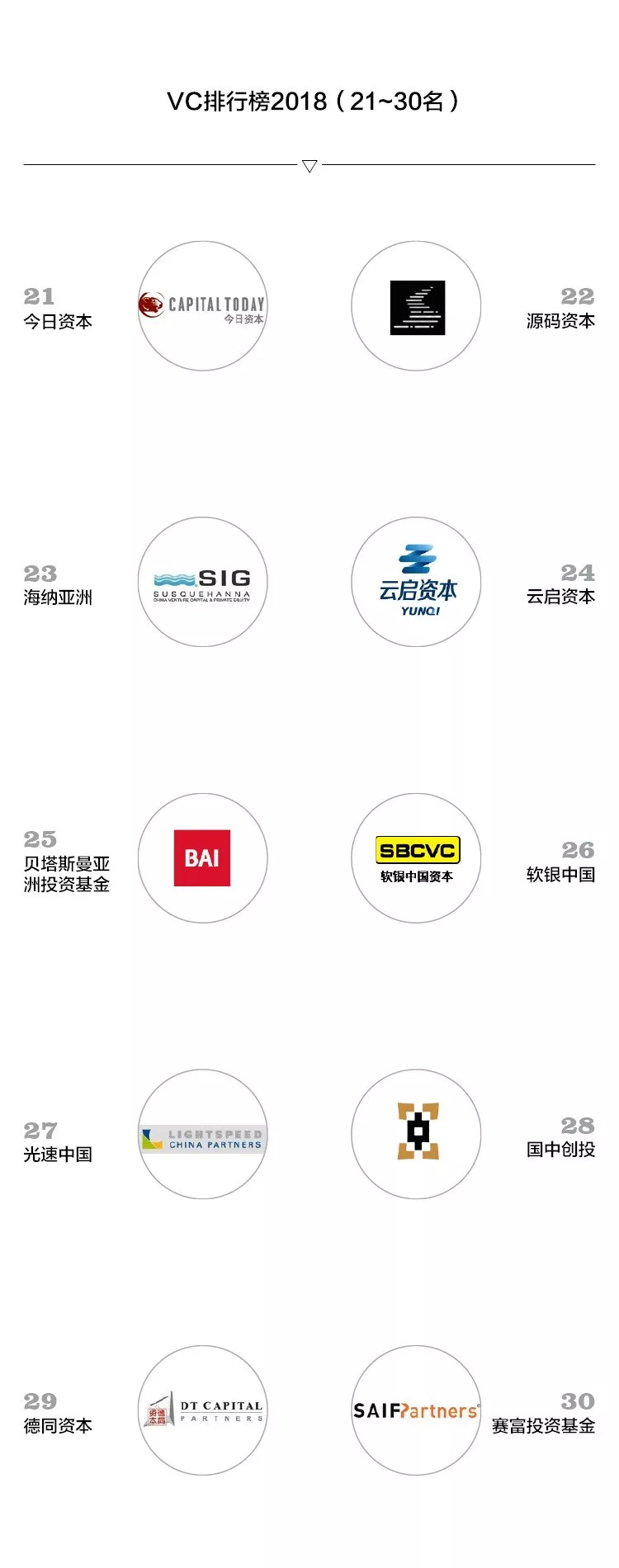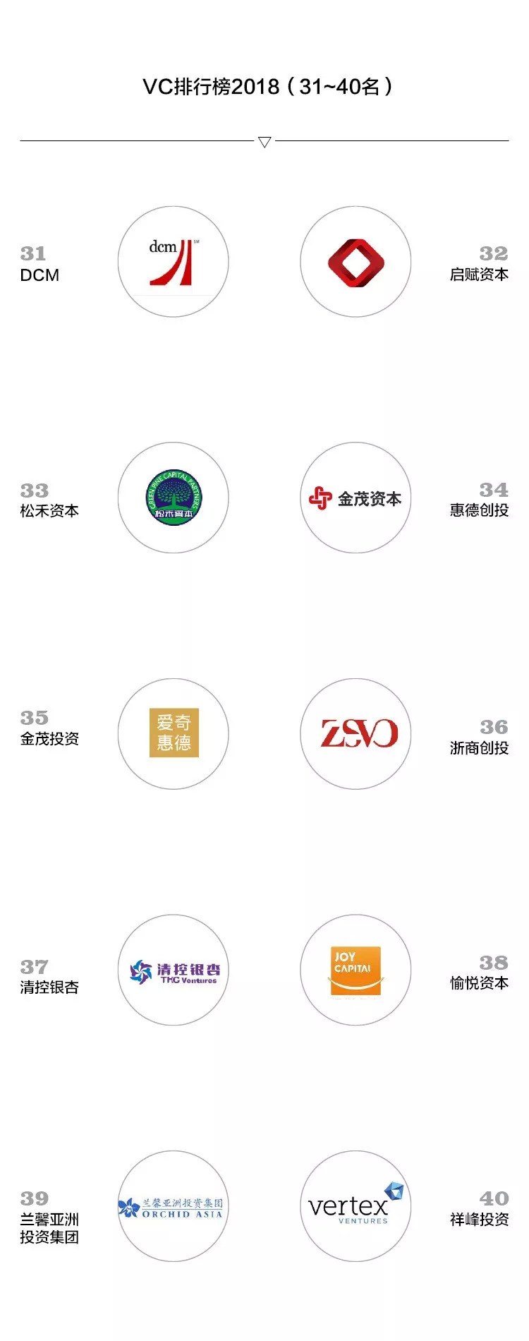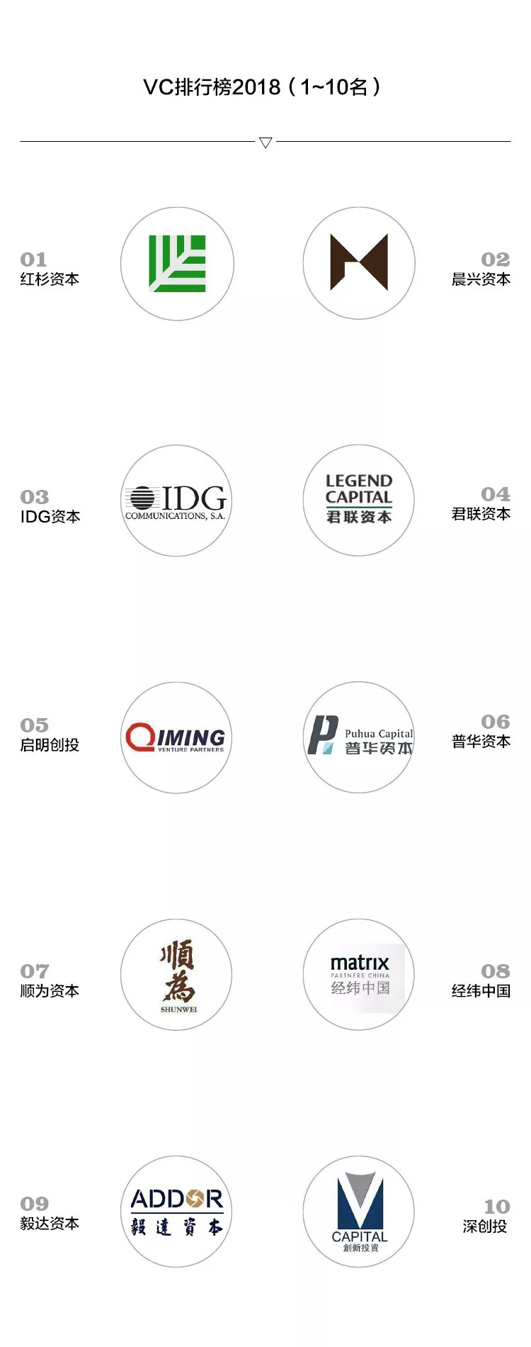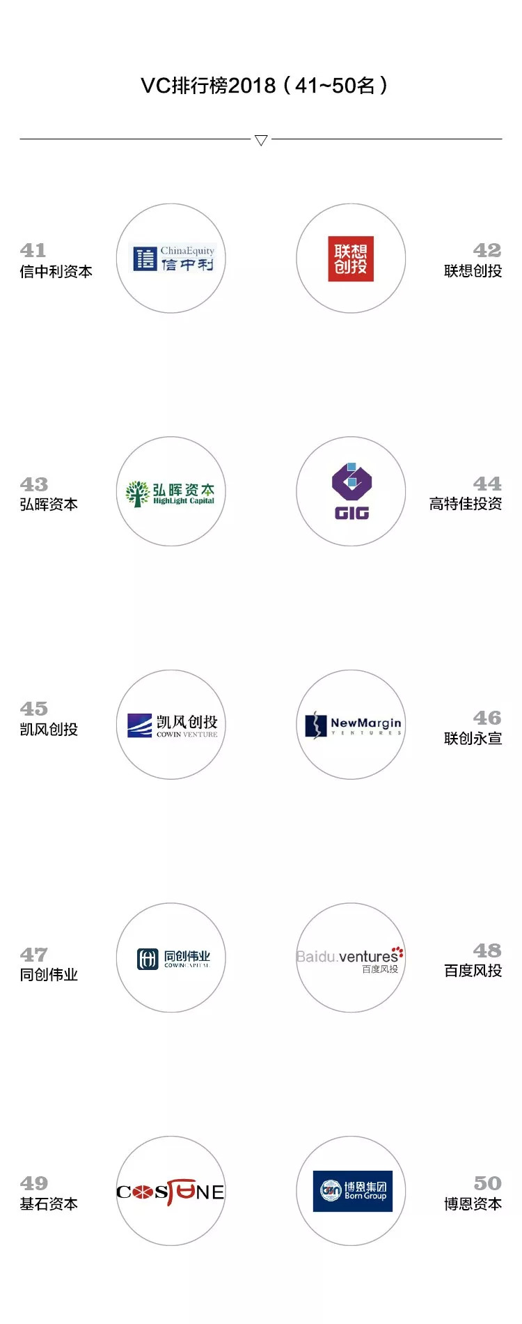 以下是VC排行榜2018TOP50