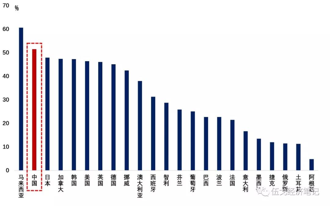 中国居民杠杆率与各国同等人均GDP阶段相比