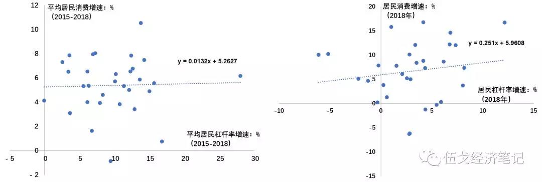 3. 尽管直观上居民高杠杆可能抑制消费,但目前数据表明,我国杠杆率增速较快的地区,其消费并不低迷。现阶段居民杠杆抬升对消费的带动效应或大于挤出。