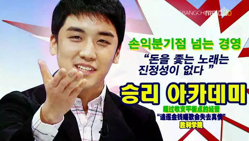 不过,在他自己的选择中,已经开始逐渐把娱乐生涯往商业领域转向。在2009年团综的拍摄中,李胜利的宿舍里就已经出现《导师的经营笔记》《入门经济学》《获胜的习惯》这样的书籍。两年后,他在光州和大田开设了胜利学院,主要课程为音乐和舞蹈,并在当年顺利实现盈利,这也是他有迹可循的最早的一桩生意。尽管李胜利说自己“作为歌手没有得到认可”,但是他的胜利学院却走出不少知名的偶像,防弹少年团的J-HOPE,WINNER的金秦禹,EXID的惠潾都曾在这里学习。