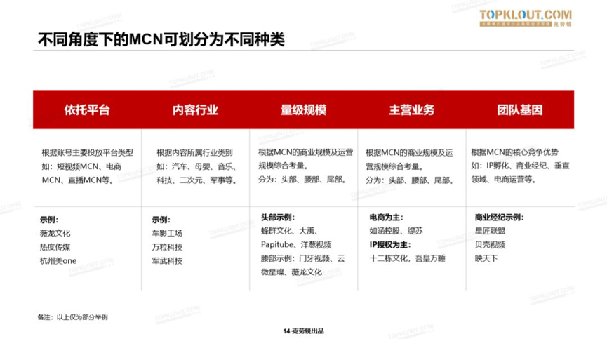 MCN(Multi-Channel Network,多频道网络)的概念起源于美国,相当于内容生产者和YouTube的中介。MCN不生产内容,只是将众多力量薄弱的内容创作者聚合起来建立频道,帮助他们解决推广和变现的问题,最后再以一定的比例与创作者分成。