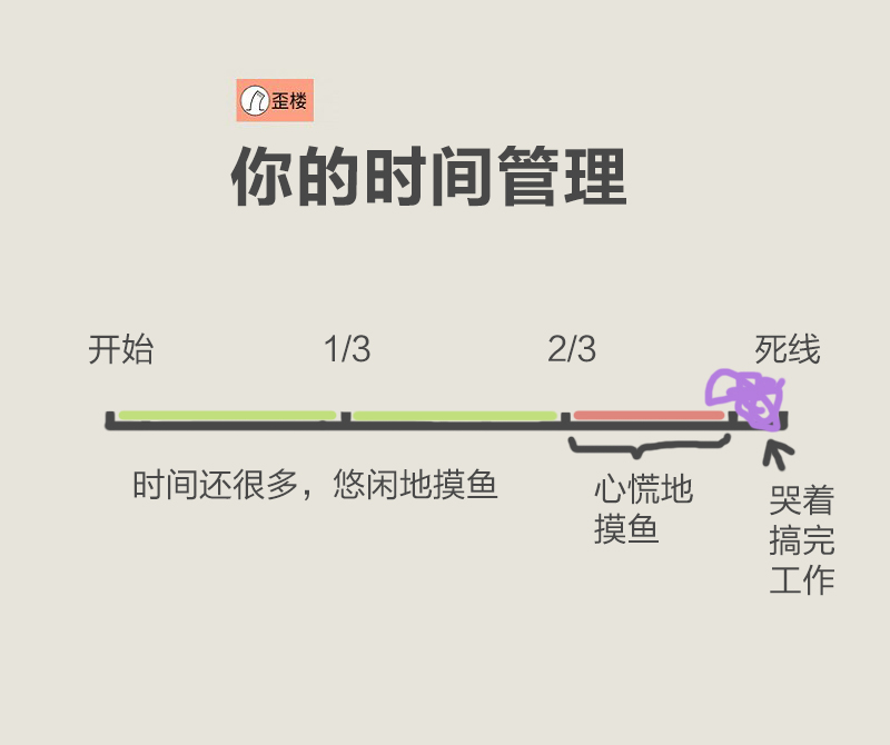 拖延症患者有自己独特的时间观念:只要别人也还没开始做,我就不算拖延。▼
