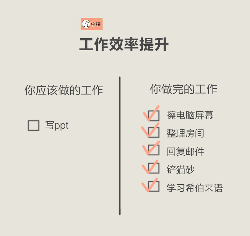 为了拖延,人类克服了软弱,承受着焦虑,容忍着生活的蹂躏,这一定有原因的!