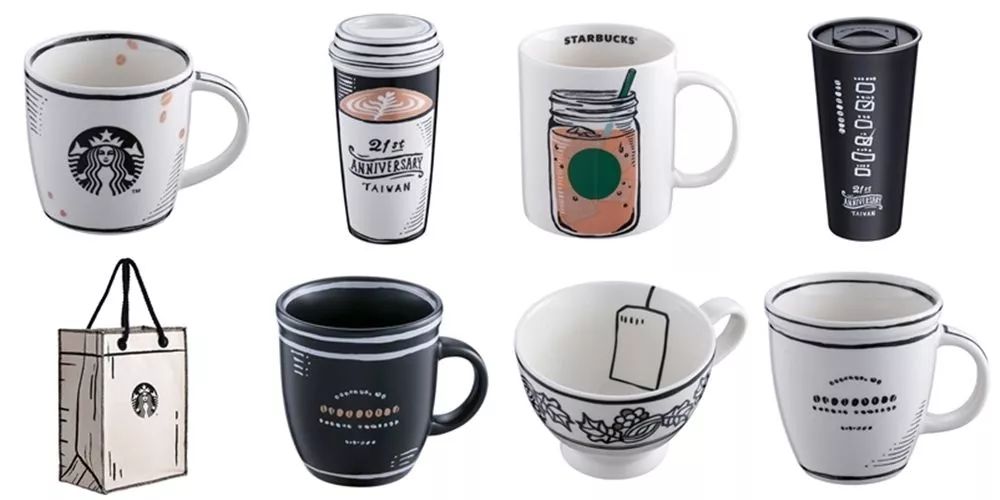 适逢21周年庆,台湾地区星巴克以时下流行的2D漫画为灵感,结合酷炫的黑白色调,顺势推出21周年系列周边;设计师翻玩经典设计,为传统的绿色美人鱼注入新意与幽默感!