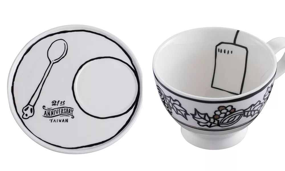 除了杯款外,餐盘组与手提袋也幽默上线。比如:这套花绘杯盘组就十分有趣,盘底上画了一个2D图案的汤匙,猛一看还以为真的上面有汤匙。杯身上也绘有花绘,显得十分清新迷人。