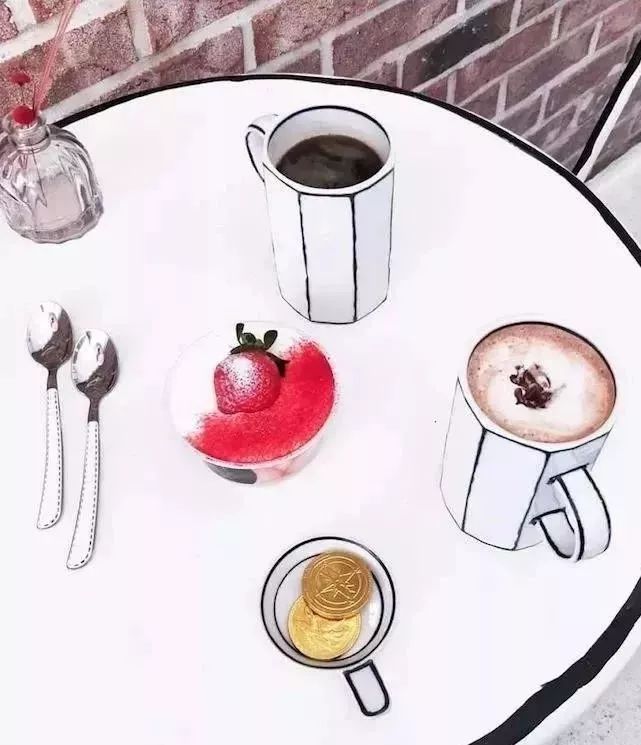 平时生活中寻常的事物突然充满了2D 的视觉效果,仿佛穿越现实世界置身于漫画插图之中。如果不是桌上冒着热气的咖啡,还真以为掉进了甜蜜的兔子洞。