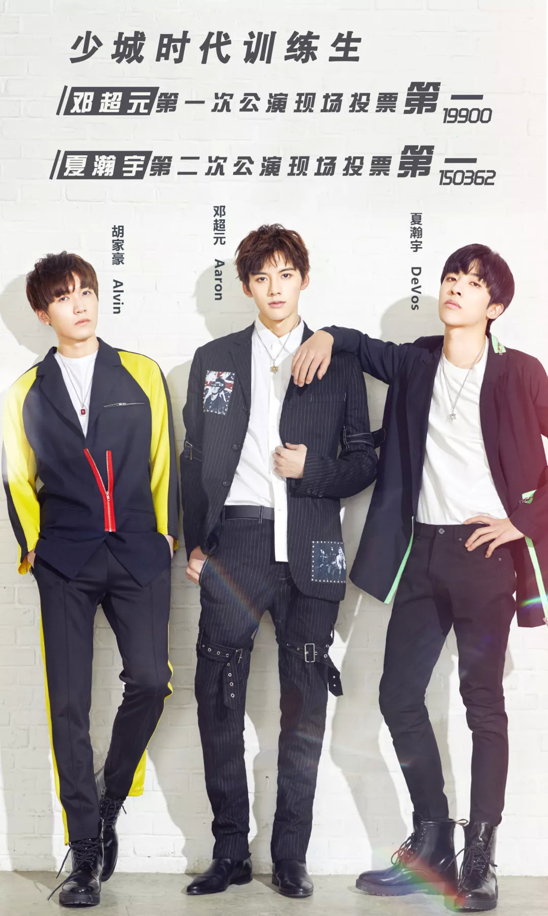在《青春有你》第一场、第二场公演舞台上,来自少城时代的邓超元和夏瀚宇现场投票数位列第一