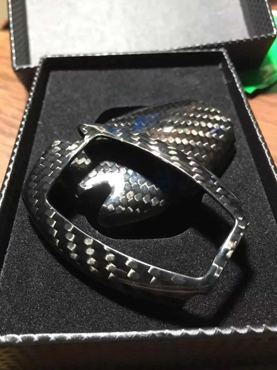 真碳纤维是真好看,而且轻,唯一的缺点就是贵!这个碳纤维钥匙保护壳,要两百多块钱,而这个一键启动保护壳,也要大几十——
