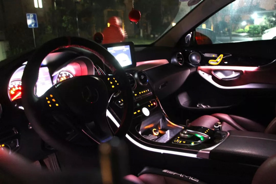 当初改完还兴奋地发了朋友圈,感觉很有成就感,然而没过几个月,灯珠就依次坏了,目前为止,只剩下黄色的灯光了,想等下次换个12色的。所以告诫大家,千万不要贪便宜,现在4S店都可以装柏林加氛围灯的套餐了,直接去4S店,省事省力。