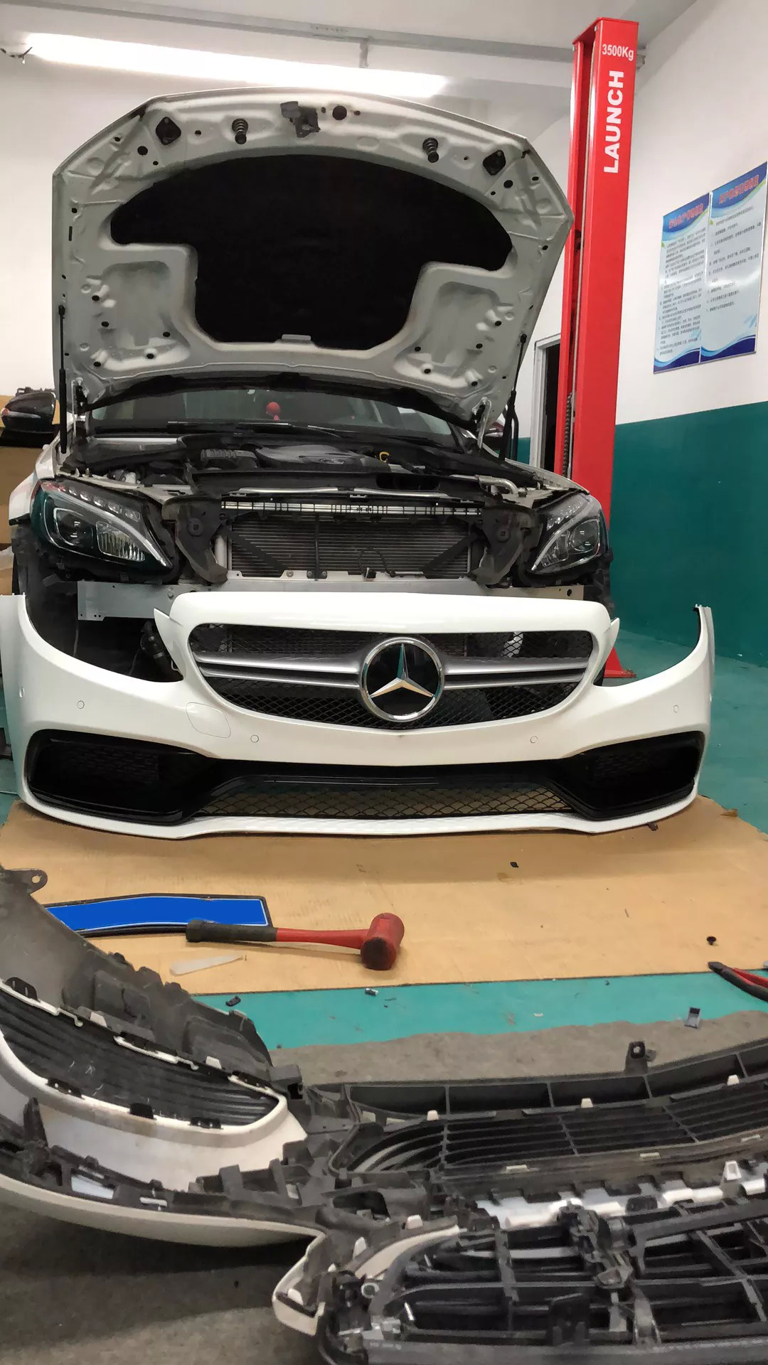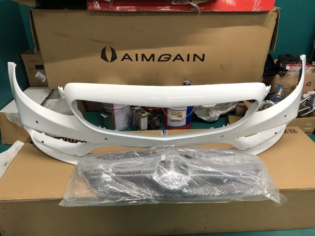 然而我最想改的竟然不是轮毂,而是AMG包围。事实上,之前在某宝上我已经看了无数遍的AMG包围了,卖得最贵的是台产AN的。而很多国产厂家则是根据AN厂自己又修改的,使得贴合度更好(是的,AN厂的前杠贴合度欠佳)。后来改装店的朋友说,AN厂的质量不错,他可以帮我改。其实我也有私心,万一前杠质量有问题,或者擦了碰了走保险,还可以找他们解决。而如果是我自己去买,他们只是负责装而已,后续有点麻烦,就想碰碰运气,看看贴合度如何。