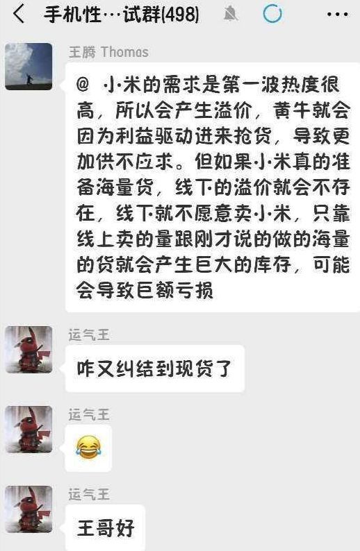 小米产品总监王腾一向大嘴,喜欢现身说法宣传自家产品,还不忘与友商打嘴仗,甚至越俎代庖地在米粉微信群里干起了公关,观点清奇地解释了大家关心的缺货问题。
