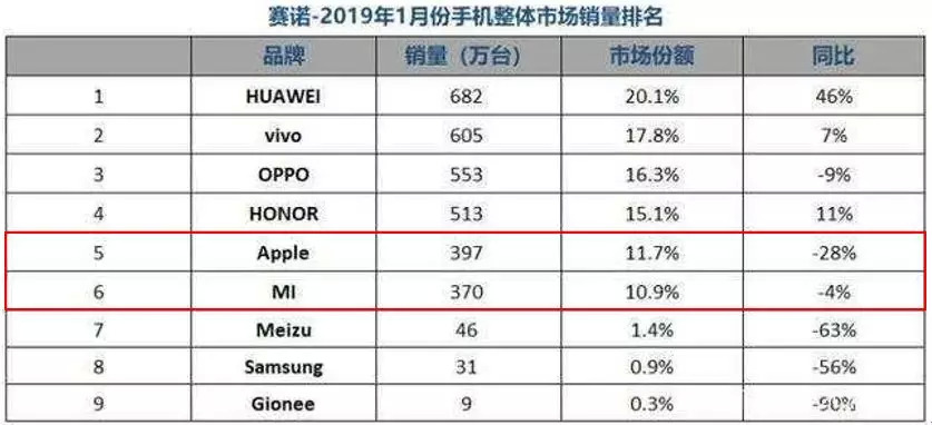 赛诺1月份数据显示,华为、vivo、OPPO、HONOR成为国内市场第一阵营,苹果与小米成为第二阵营并继续下滑。主流品牌4+2的格局形成。