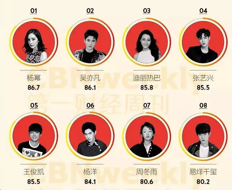 《第一财经周刊》发布的《2018最具商业价值明星榜》TOP 8