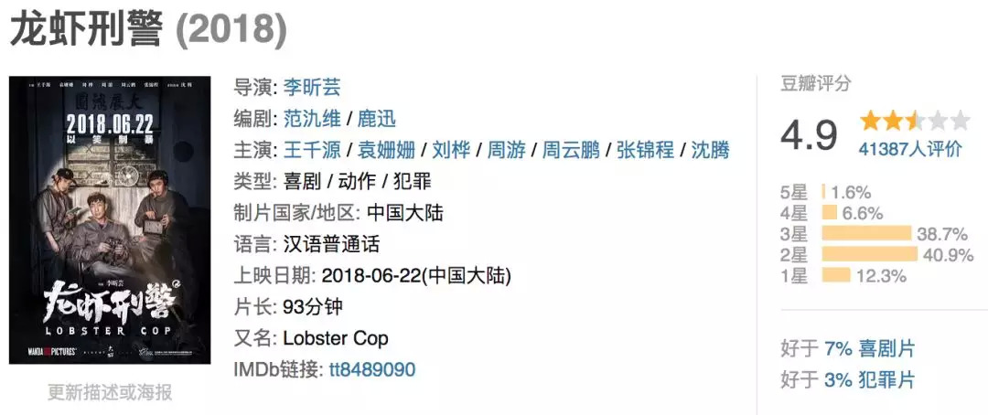 我们鼓捣出了一部观众并不买账的《龙虾刑警》,韩国在迟于我们半年后的时间制造出了爆款之作《极限职业》。