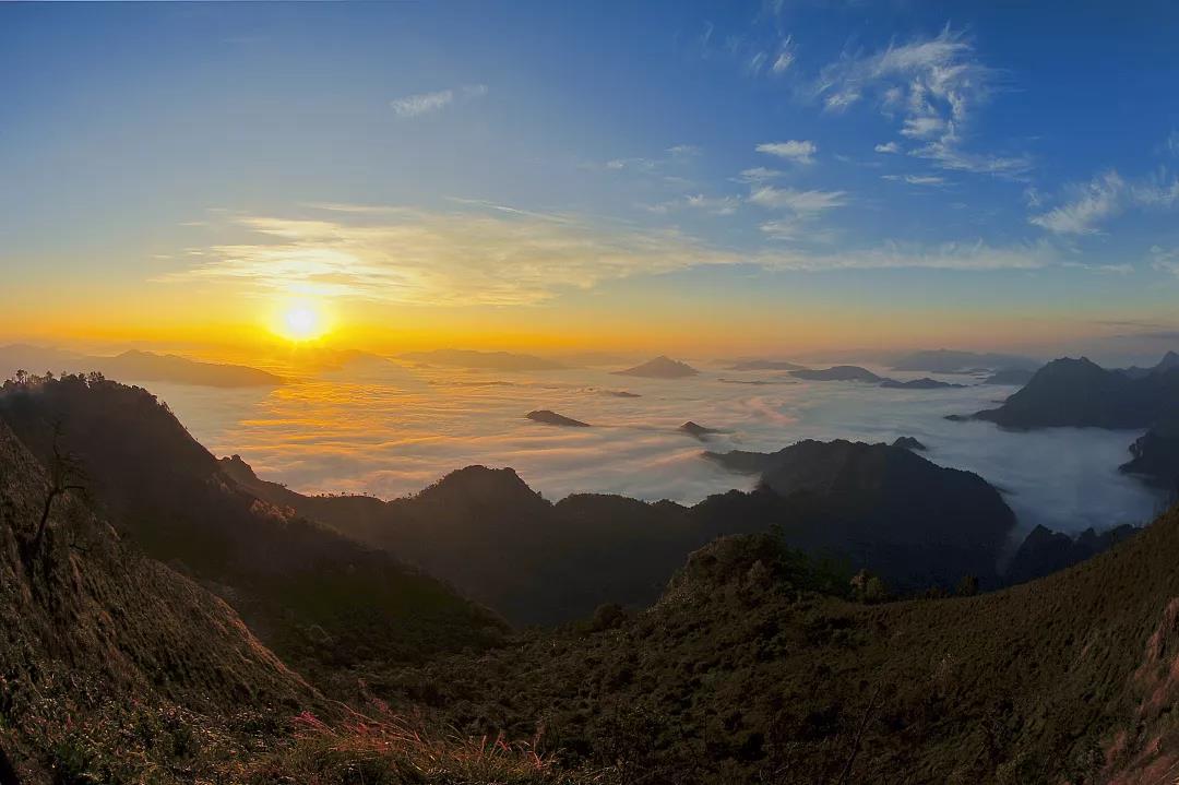 在这个风景区能看到日出,日落和雾海,也可以清楚地看到指天山以及泰国和老挝的边境。