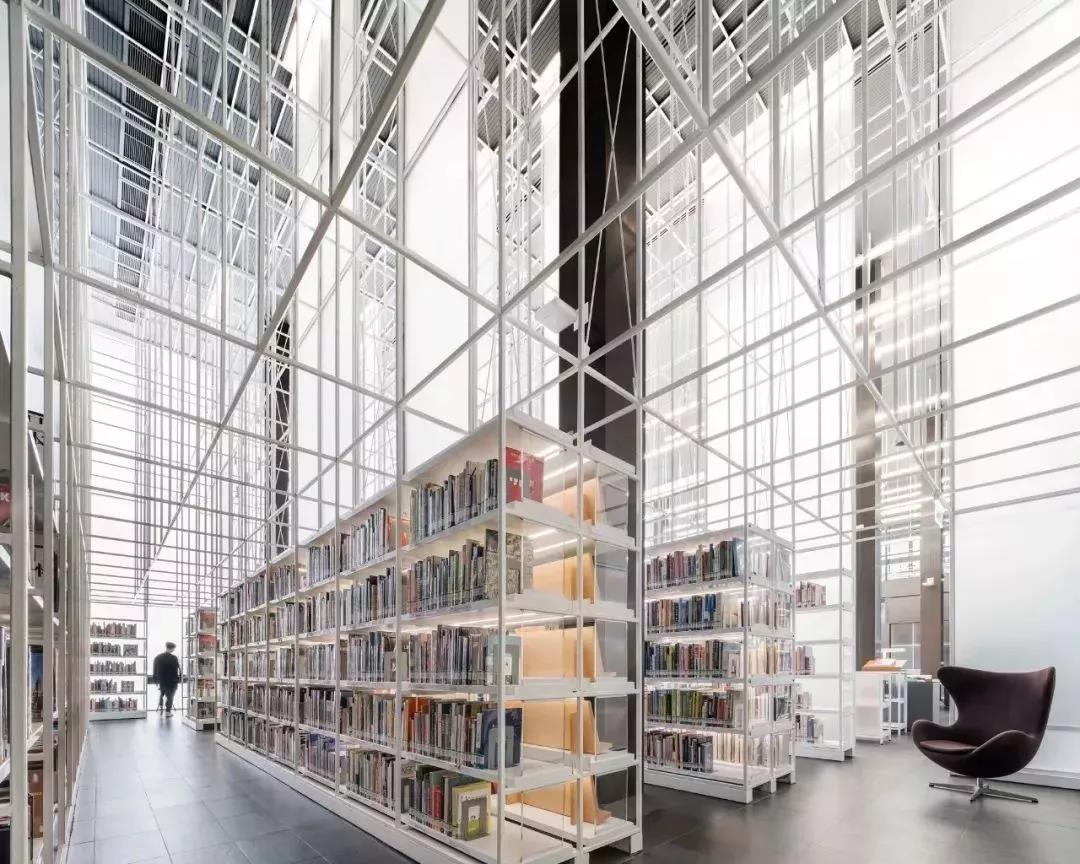 其中设计资源中心是最吸引人的地方,这里有超过18,000本艺术与设计书籍,而且用于陈列书籍的书架也是线条感十足。