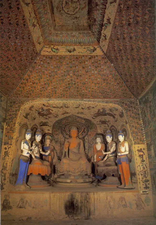 后又经隋唐宋元等朝代兴建,现在存世石窟规模宏大,共有735个,石窟内画作总面积有4万多平方米,雕塑超过2000尊。