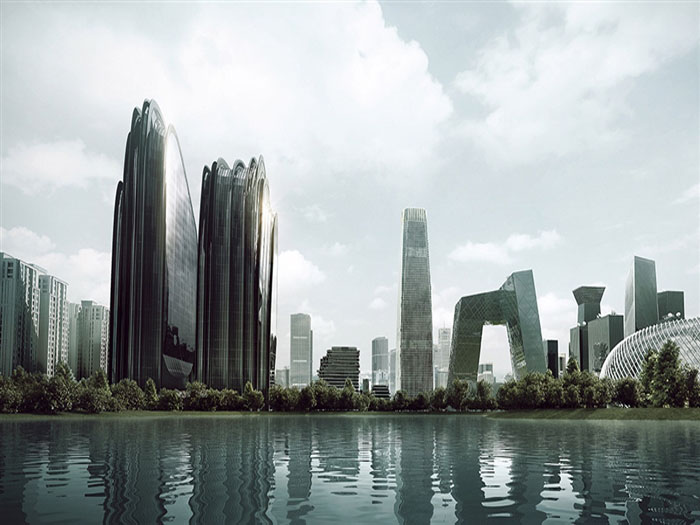2014年建筑师事务所MAD公布了北京朝阳公园广场的建筑规划。摩天大楼环绕的朝阳公园广场将以湖、 泉、林、溪、谷、石、峰这些中国山水画中的传统意境为蓝本打造一个出人与自然和谐共处的建筑模式,创造出一个城市景观与自然风景相得益彰的空间。