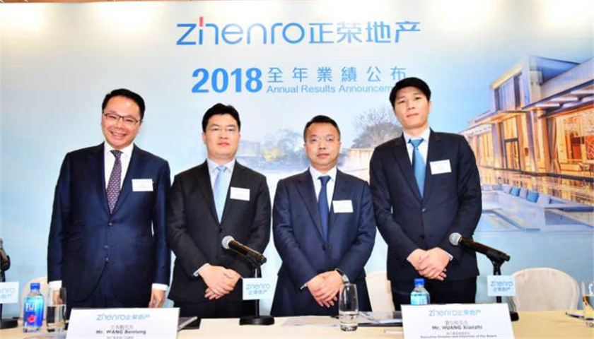 3月25日,正荣地产在香港举行2018年度业绩发布会。正荣地产执行董事兼董事长黄仙枝、执行董事兼行政总裁王本龙、执行董事、副总裁兼财务总监陈伟健、非执行董事欧国伟等高管出席。