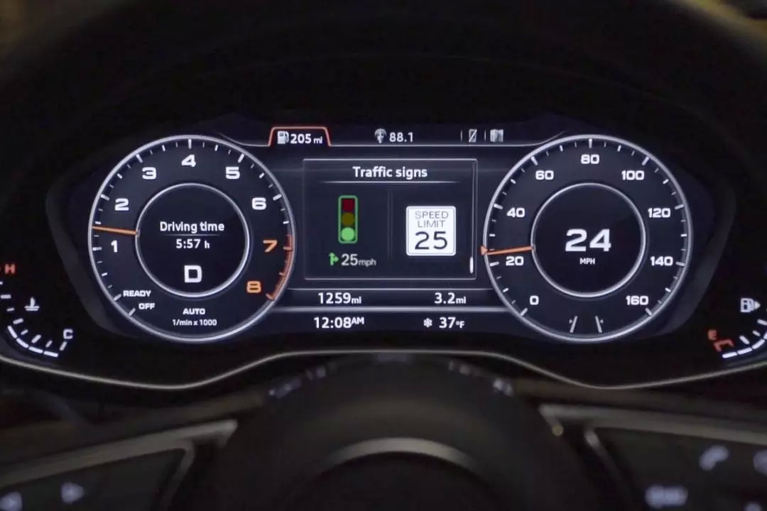 在测试中,驾驶者们发现,仪表盘上关于红绿灯倒计时显示的数字并不会显示为0,大概在5-8秒时就会停止倒数。原因是如果数字倒计时会持续到零,驾驶者会过度集中注意力在仪表盘上,而忽视路面情况容易造成交通事故。