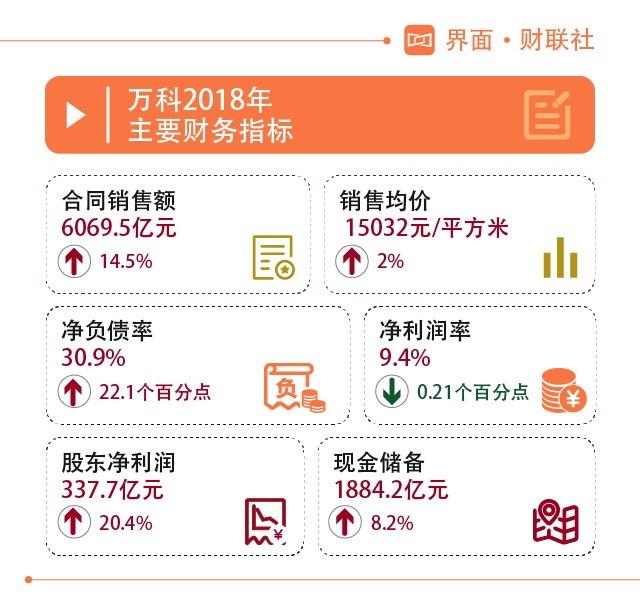 一方面是巩固基本盘的投资谨慎,另一方面某种程度上看,万科也在为转型新业务的发展加“杠杆”,其2018年净负债率(有息负债减去货币资金,除以净资产)为30.9%,在行业中维持较低水平,但其2017年、2016年的净负债率仅为8.8%、25.9%。