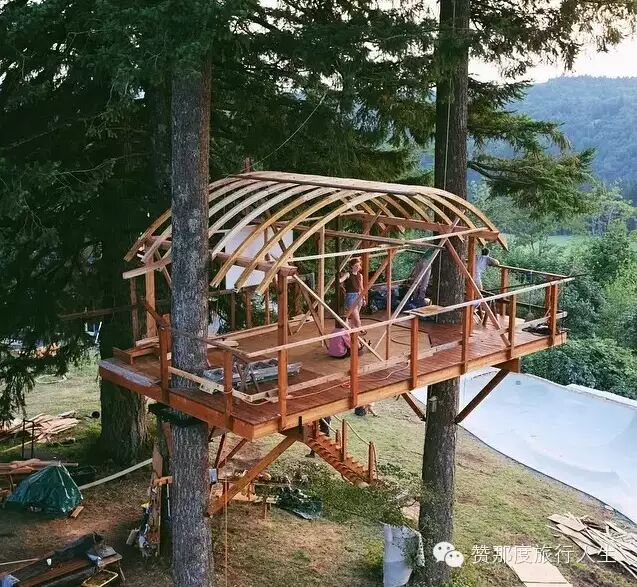 2014年夏,他突然想停下来了,想要一个小小的房子,就像小男孩时代所梦想的那样,建造一个树屋。