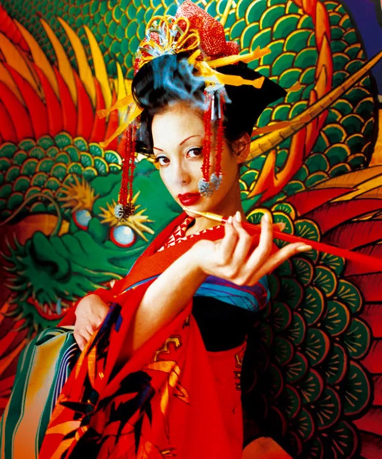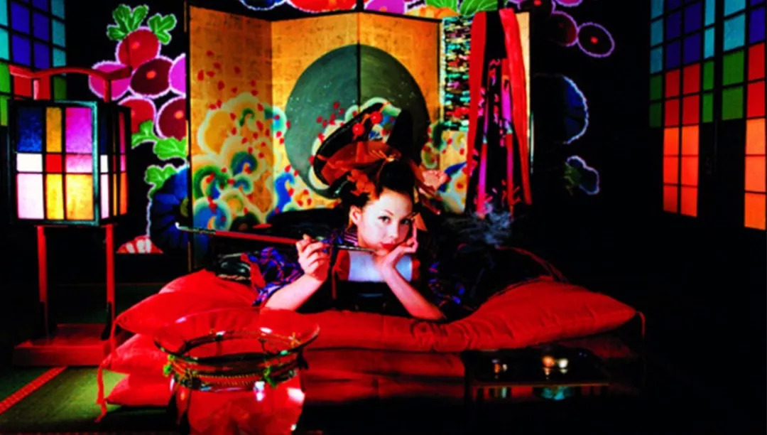 电影画面中正是繁花似锦的江户,浓墨重彩饱和流溢,华美至此,最显眼的却依然是土屋安娜铺天盖地而来的妩媚,在她的眉眼中是漫不经心却又胜券在握的美态。