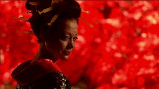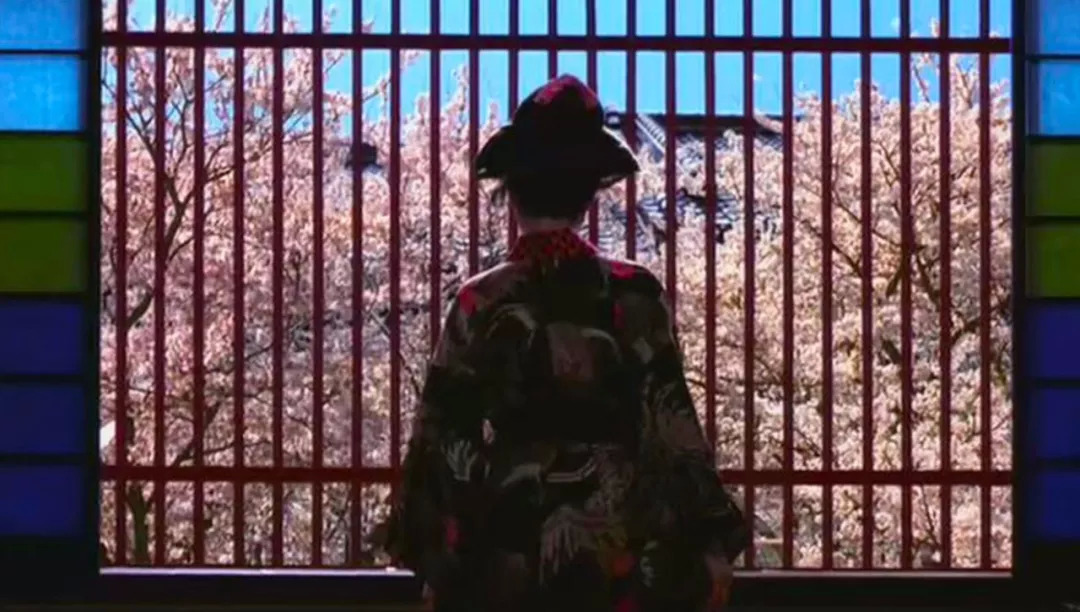 摄影师出身的导演蜷川实花在电影的布景设计中做足了功夫,樱花的形象几乎无处不在。从艳丽的和服到背后的纸门,再到背景的映衬,无愧于电影的原名《樱花乱》。